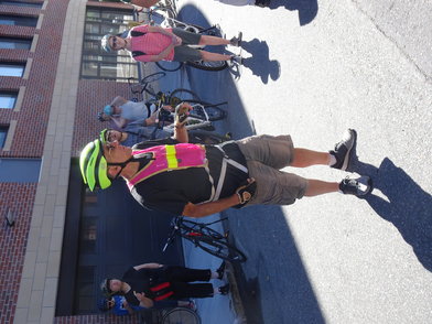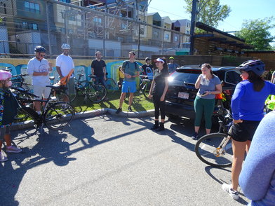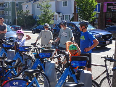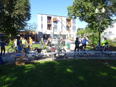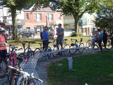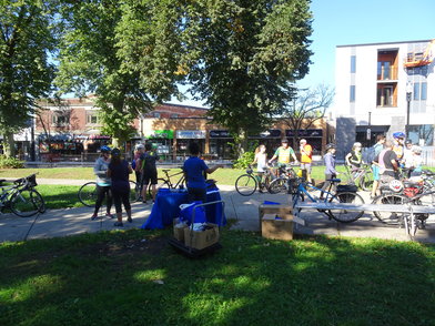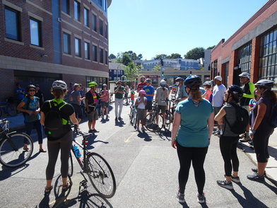 Jamaica Plain, plus our local bike shop, Busted Knuckle, by bike, with free food along the