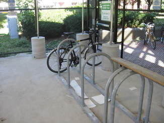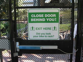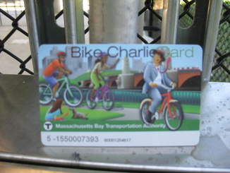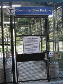 | The RozzieBikes coordinating committee biked through Forest Hills on Wednesday night after a meeting and were surprised to see that the bike cage, which has been under construction all summer, was effectively complete. I went back on Saturday after tabling at the Roslindale Farmers Market and checking out possible new access routes to the Francis Parkman monument on Jamaica Pond, and found that the MBTA had put up signs. I tried my Bike Charlie Card, and it worked! |